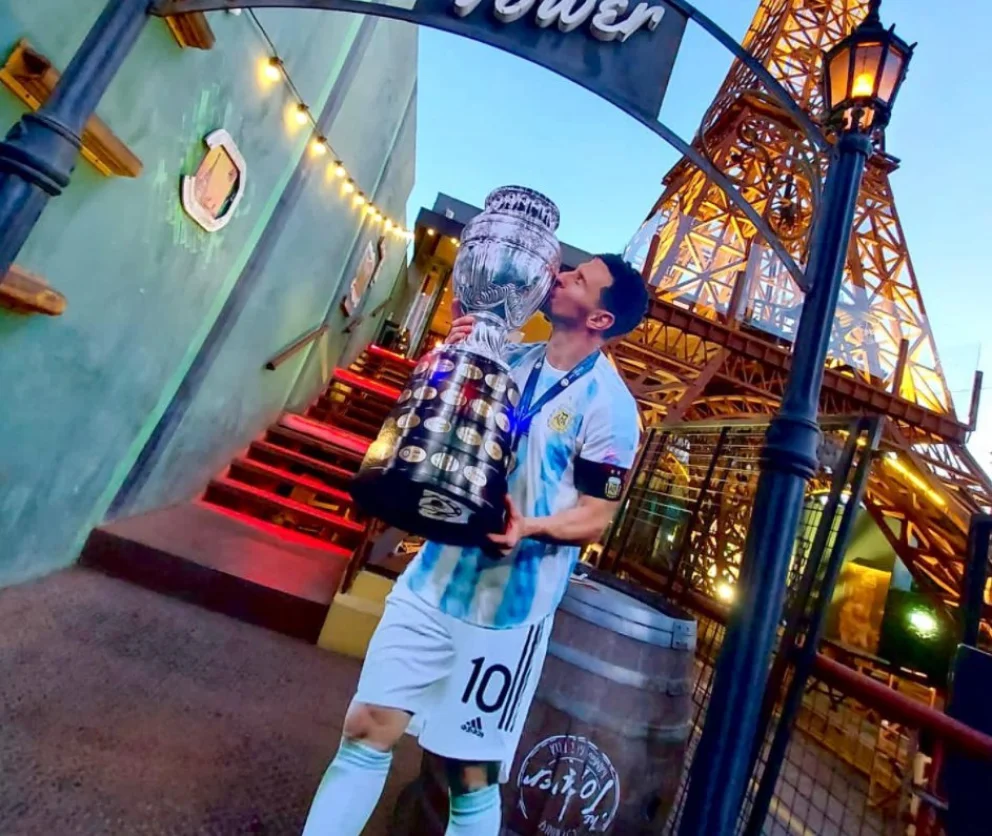 El emblemático bar "The Tower Beer House" ubicado en Ituzaingó es reconocido por contar con una estructura que réplica la Torre Eiffel de París. Con la sorpresa mundial que generó la salida de Leonel Messi del Barcelona y su llegada al Paris Saint Germain, desde la cervecería del oeste instalaron una gigantografía del diez levantando la recientemente ganada Copa América, a cual pueden acercarse vecinos, hinchas y aficionados a sacarse fotos para ilustrar un momento único.