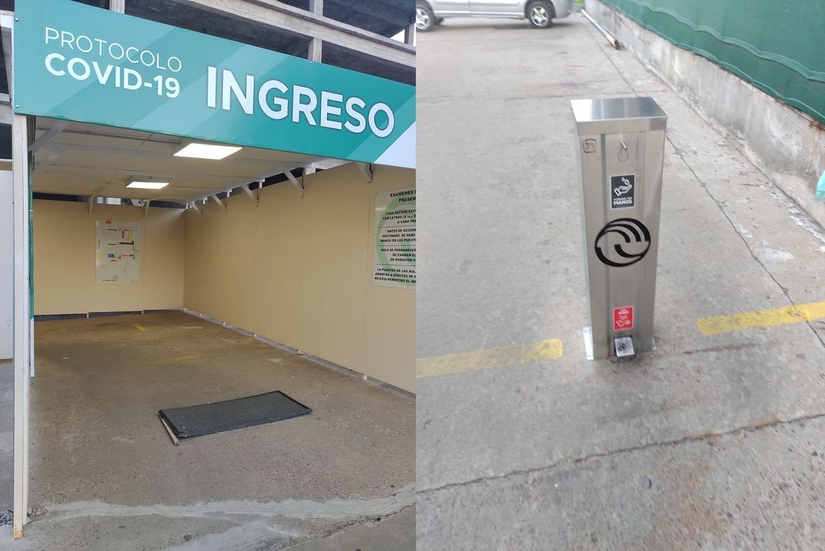 Sin embargo, todas las personas que entren deben pasar por un pasillo higiénico que se instaló en ambos ingresos. Dentro de este hay una alfombra para limpiarse los pies y a la salida hay unos dispenses de alcohol en gel que se activan a pedal para evitar el contacto directo con las manos.