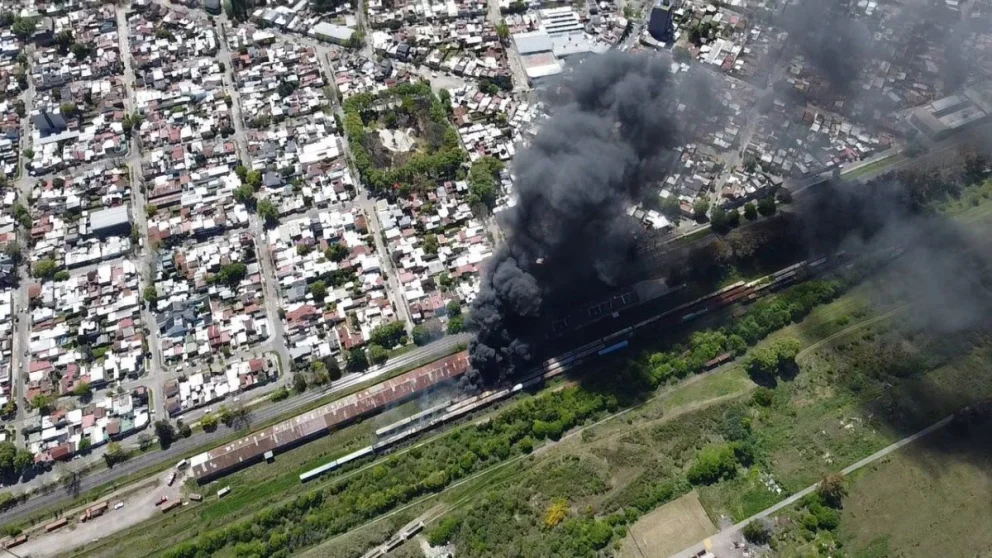 Un fuerte incendio sorprendió a los vecinos de Tres de Febrero este mediodía. Las imágenes son claras e impactan: una densa columna de humo negro en la zona de los talleres ferroviarios de la Línea San Martín. Esta zona es conocida como el Predio Alianza de Santos Lugares y según informaron fuentes de Bomberos Voluntarios a este medio, el fuego habría comenzado en tres vagones que se encuentran fuera de funcionamiento en la actualidad.