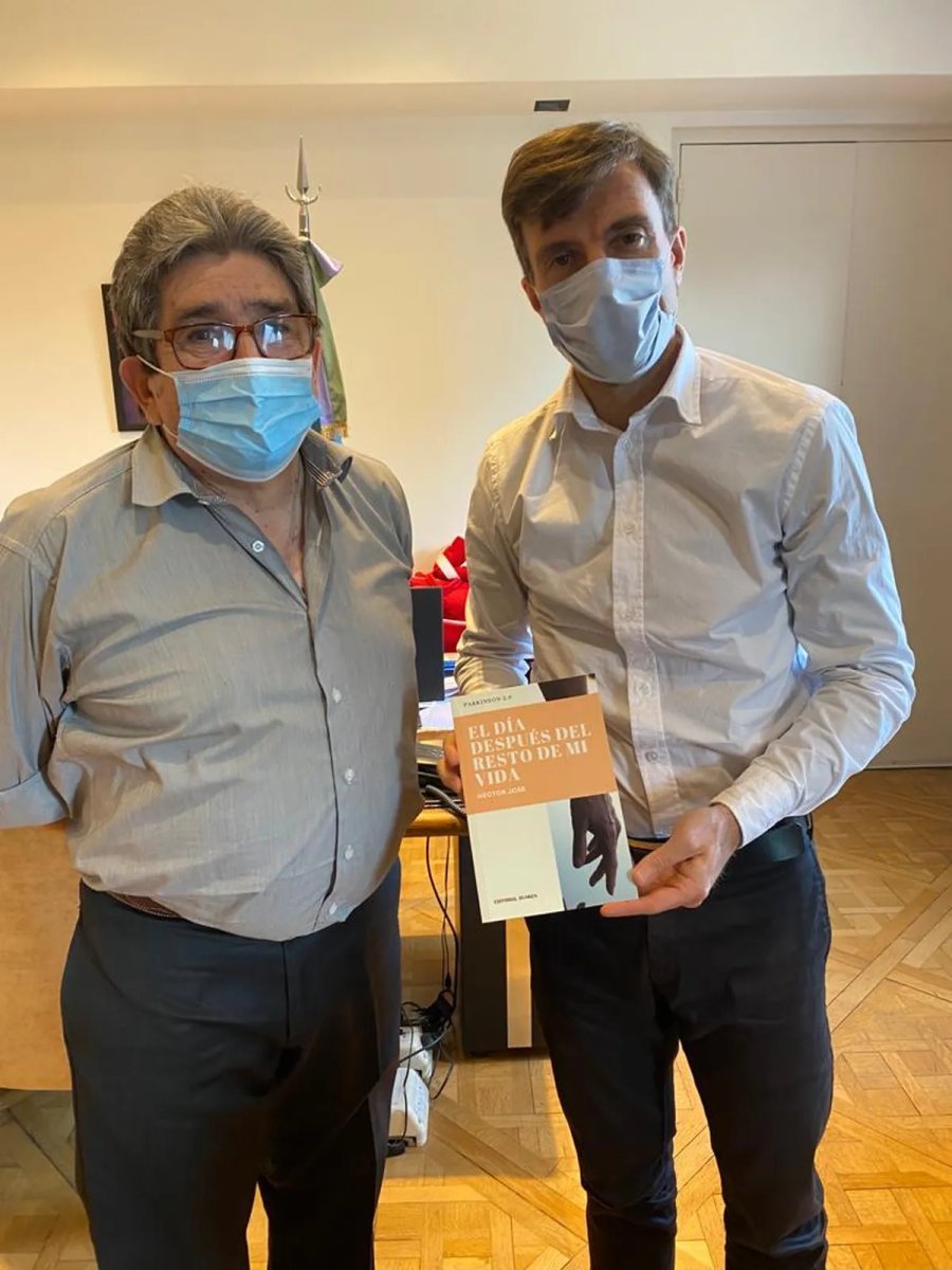 "Con mucha satisfacción recibí la visita de Héctor José, vecino de Morón, quién me acercó su libro "El día después del resto de mi vida" que relata su experiencia como paciente de la enfermedad crónica de Parkinson", relató Lucas Ghi en redes sociales.