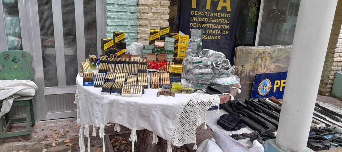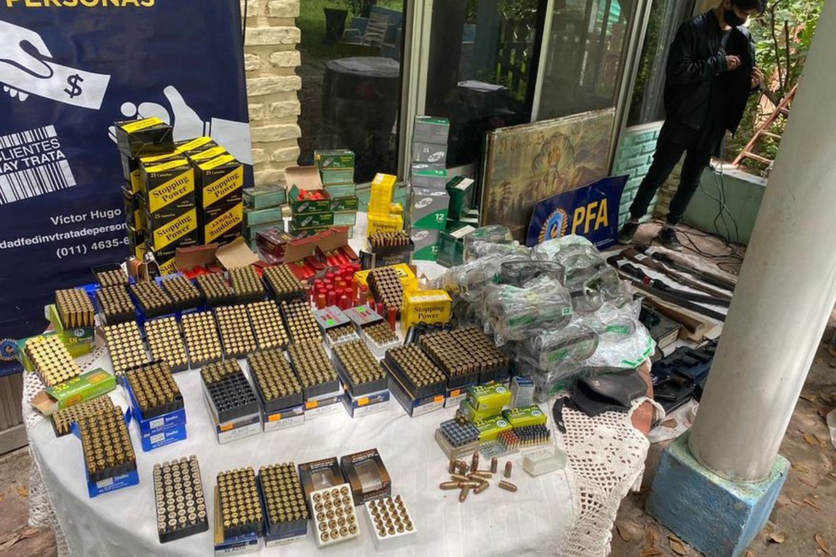 Según detalló la Policía, La secta Abba Krishna contaba con al menos diez armas, entre ellas dos Itakas, escopetas y pistolas de alto calibre, además de cientos de municiones, que fueron encontradas en un altillo en la casa personal del líder, Aldo F. de 66 años.