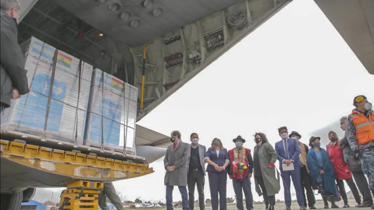 La funcionaria planteó que, con la donación a Bolivia del millón de dosis de AstraZeneca, "quedó atrás" el tiempo en que la Argentina utilizaba el avión Hércules C-130 de la Fuerza Aérea para "dividir a los pueblos", en referencia al contrabando de material represivo que se envió a La Paz durante la gestión de Mauricio Macri para colaborar con la represión de los manifestantes del Movimiento al Socialismo (MAS) que se oponían al golpe contra Evo Morales.