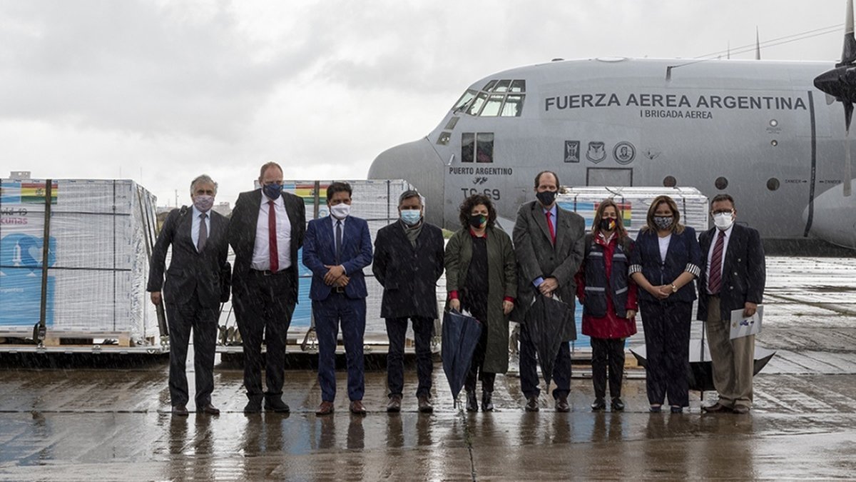 El gobierno argentino le donó a Bolivia un millón de vacunas de AstraZeneca contra el Coronavirus. El cargamento partió desde el Aeropuerto de El Palomar.