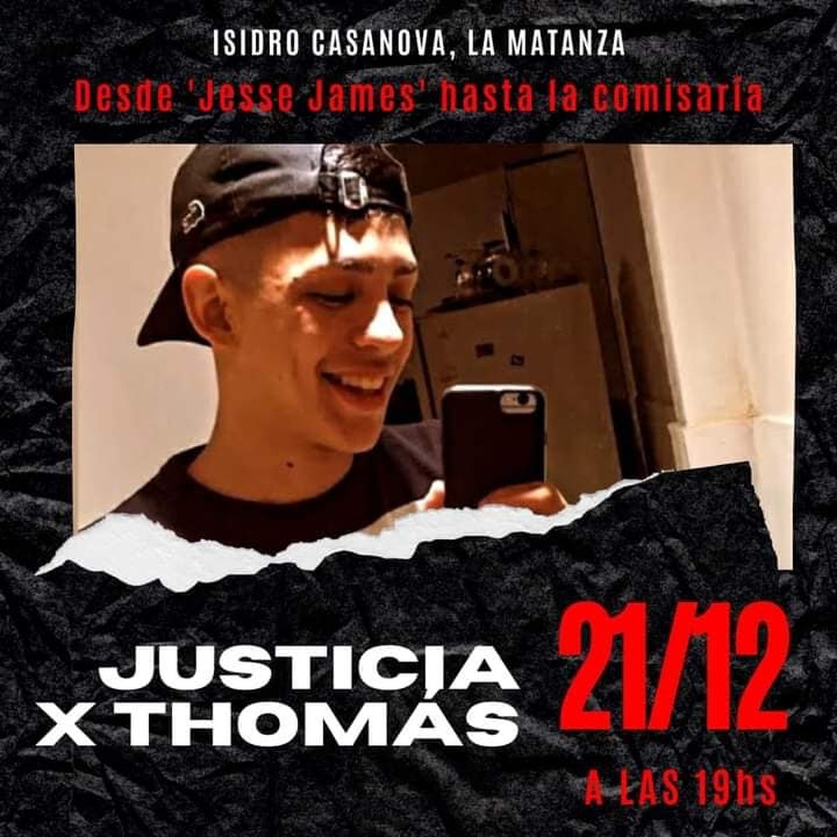 A raíz de esta situación, donde el joven quedó herido de gravedad y deberá enfrentar una larga recuperación, sus familiares y amigos en las redes sociales invitan a una marcha a llevarse a cabo hoy pidiendo "Justicia por Thomas", la cual comenzará a las 19 en la puerta del boliche Jesse James, en la calle República de Portugal 3.158, de Isidro Casanova, hasta la puerta de la comisaría de esa localidad para pedir que desafecten al policía involucrado.