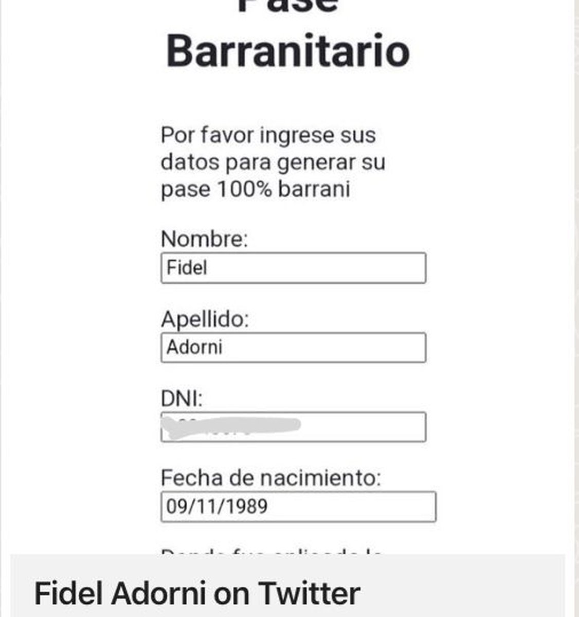 El domingo 26 de diciembre un usuario de Twitter identificado con el nombre de @FidelAdorni difundió en la red social una página web ilegal que generaba pases sanitarios truchos. Esta cuenta y web fueron denunciadas y ya se encuentran suspendidas, junto a otro perfil que actuaba de la misma manera. Por su parte, la usuaria @catalynch2 falsificó su pase sanitario con esta modalidad y lo publicó en su red social, quién también fue denunciada.