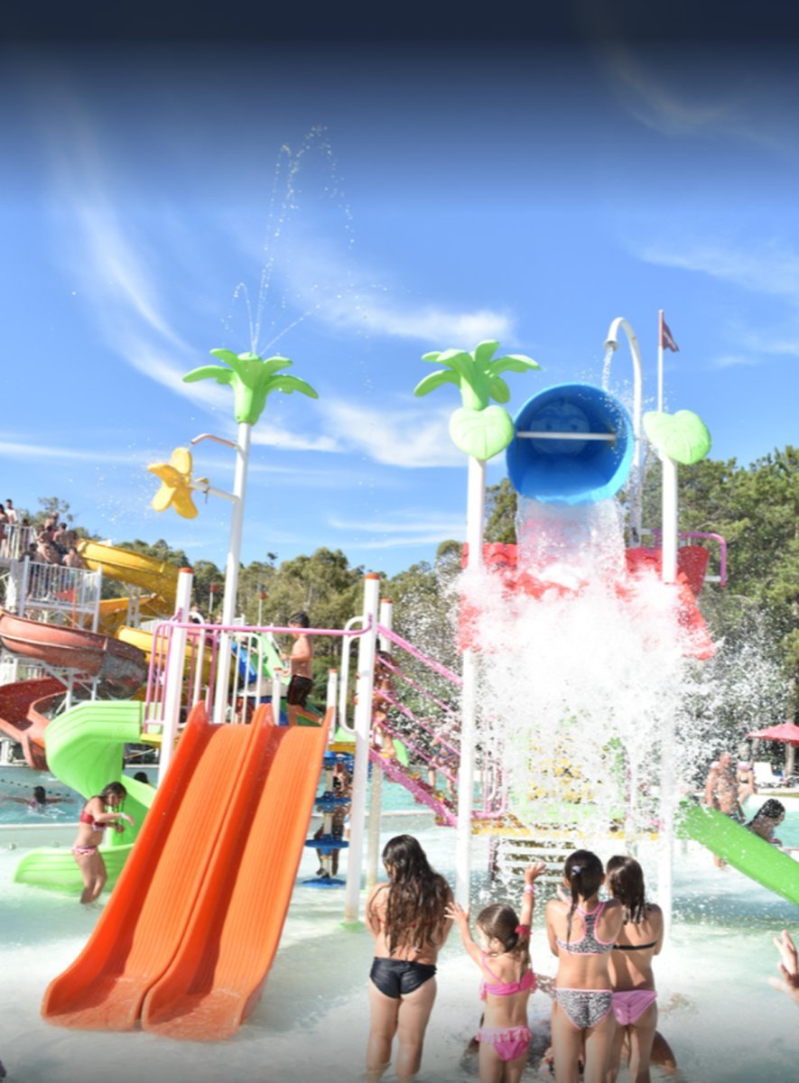 El parque cuenta con sectores para todas las edades. Desde juegos para las edades de 0 a 2 años, hasta juegos para los mas grandes. Las piletas cuentan con distintas alturas: el máximo es 1,40 metros.