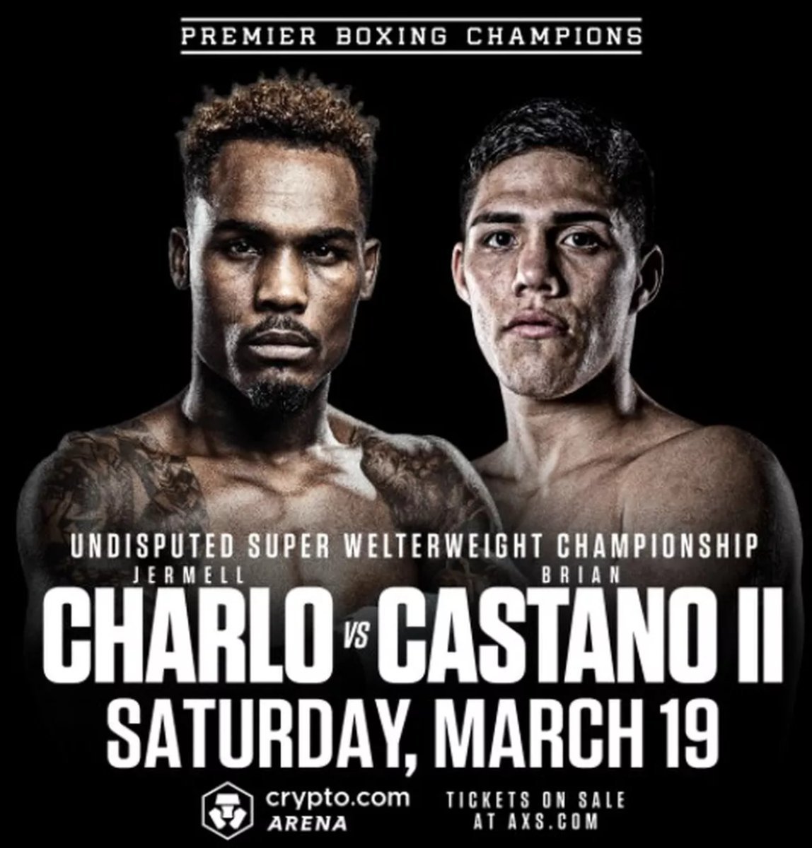 La esperada revancha entre el argentino oriundo de Isidro Casanova, Brian Castaño, y el estadounidense Jermell Charlo, por la unificación de los títulos de la categoría superwelter, fue confirmada para el 19 de marzo en la Crypto Arena de Los Ángeles, estadio multipropósito que ya puso a la venta las entradas en su página oficial.