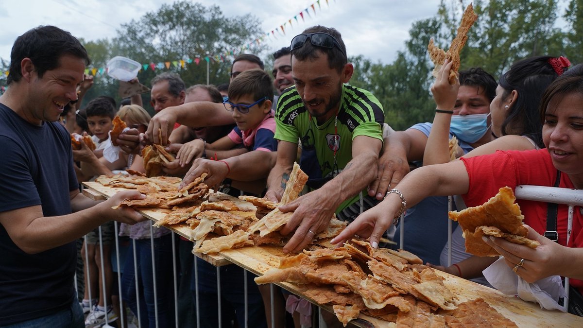 El dulce de leche, el tango, Diego, Messi y el Papa. La Avenida más larga y la más ancha del mundo. Esos récords y muchos más son orgullos argentinos y, a partir de este fin de semana, hay que sumarle uno más: la torta frita más grande del mundo es de acá también. En el marco de la 22° Fiesta Provincial de la Torta Frita que se realiza en Mercedes, cocineros y vecinos de la localidad trabajaron en conjunto para crear una masa de 5 metros de diámetro que se metió en los libros.