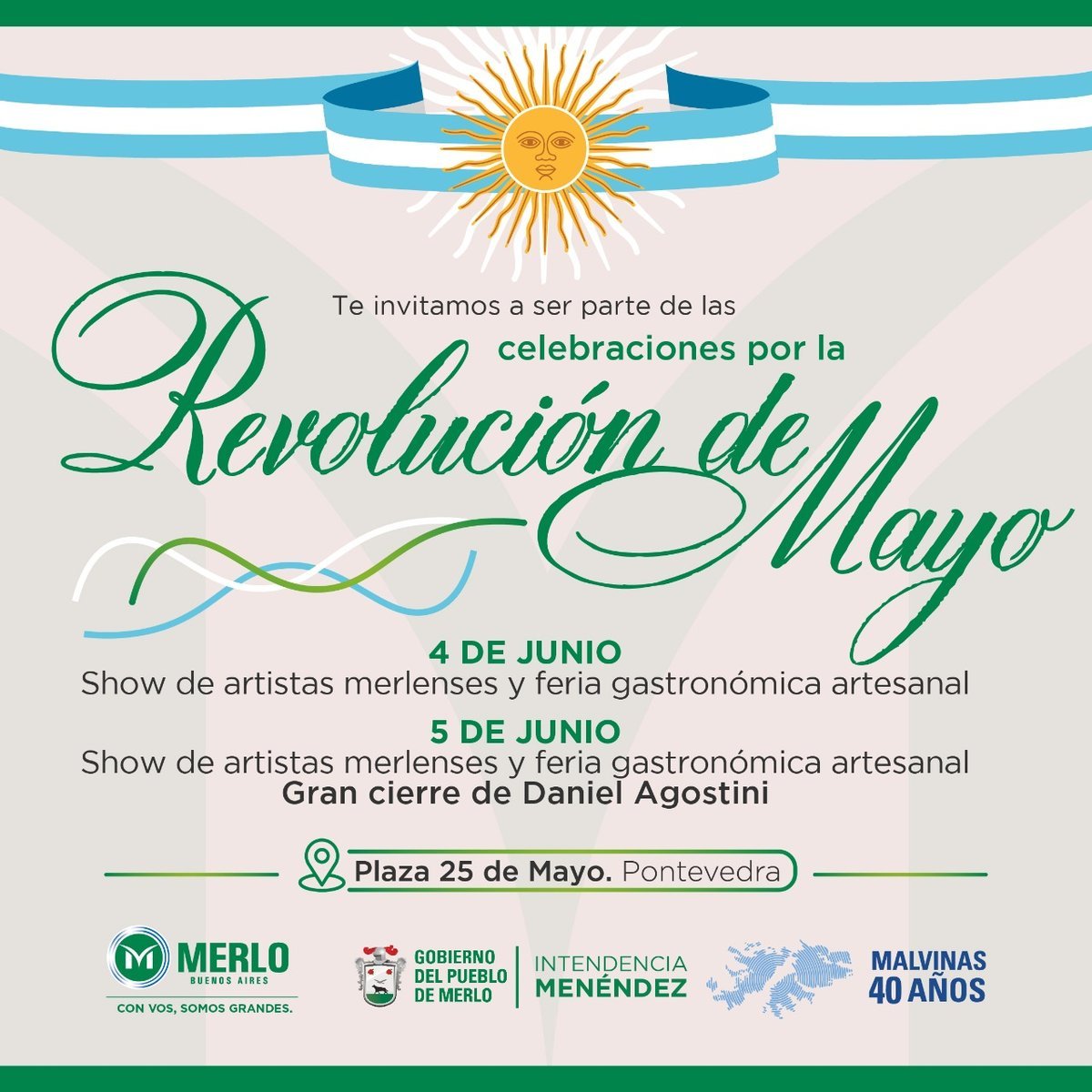 Daniel Agostini ofrecerá un espectáculo gratuito a pura cumbia, a realizarse el domingo 5 de junio en la localidad de Pontevedra del partido de Merlo, en el marco de un evento conmemorativo por la Revolución de Mayo.