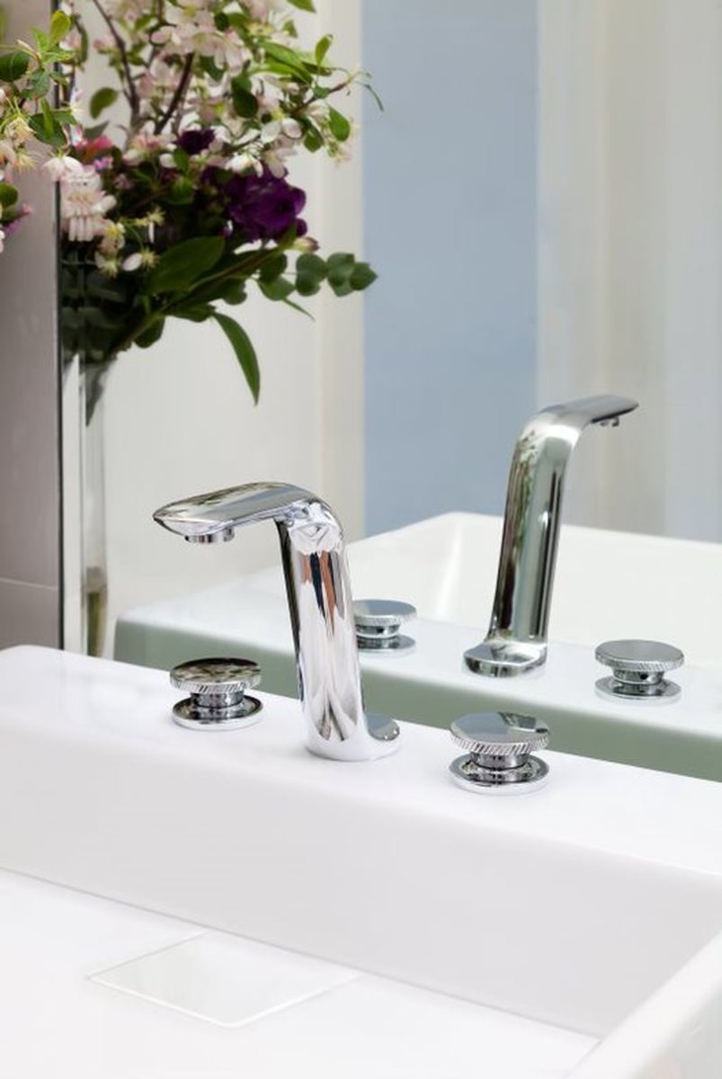 De morfología simple y elegante, Nueva 44 es el nuevo clásico-moderno. Su pico singular y delgado junto con los volantes hacen que este juego tenga una gran versatilidad para diferentes ambientes y estilos. "Es grifería para espacios clásicos, ambientes minimalistas y modernos. Cuenta con volantes con una textura que mejora el agarre y genera una mejor experiencia de uso. Tiene procesos de fabricación tradicionales, con fundición y torneado", agrega Diego Viegener.