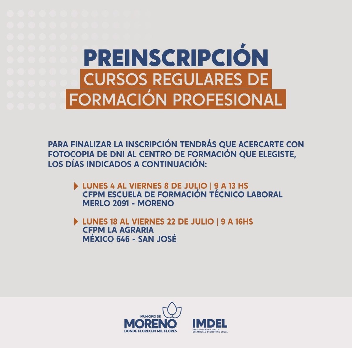 Desde la Coordinación General de Empleo y Capacitación con el Instituto Municipal de Desarrollo Económico Local (IMDEL) de Moreno invitaron a todos los vecinos a anotarse y participar de los Cursos de Formación Profesional que se brindarán en el distrito.