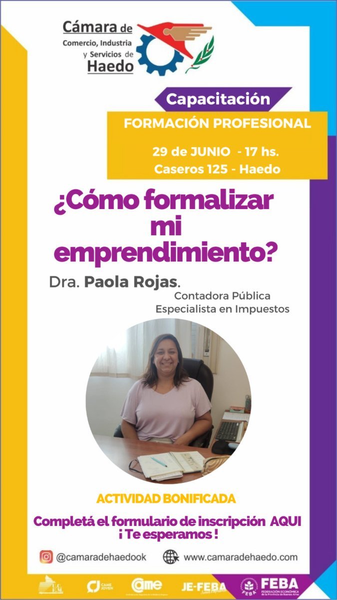 "El 29 de Junio a las 17 horas, en nuestra sede de Caseros 125 , la Dra. Paola Rojas, contadora Pública, Especialista en Impuestos nos acompañará a dar los pasos necesarios para la formalización de tu emprendimiento", indicaron, como comienzo del nuevo programa.