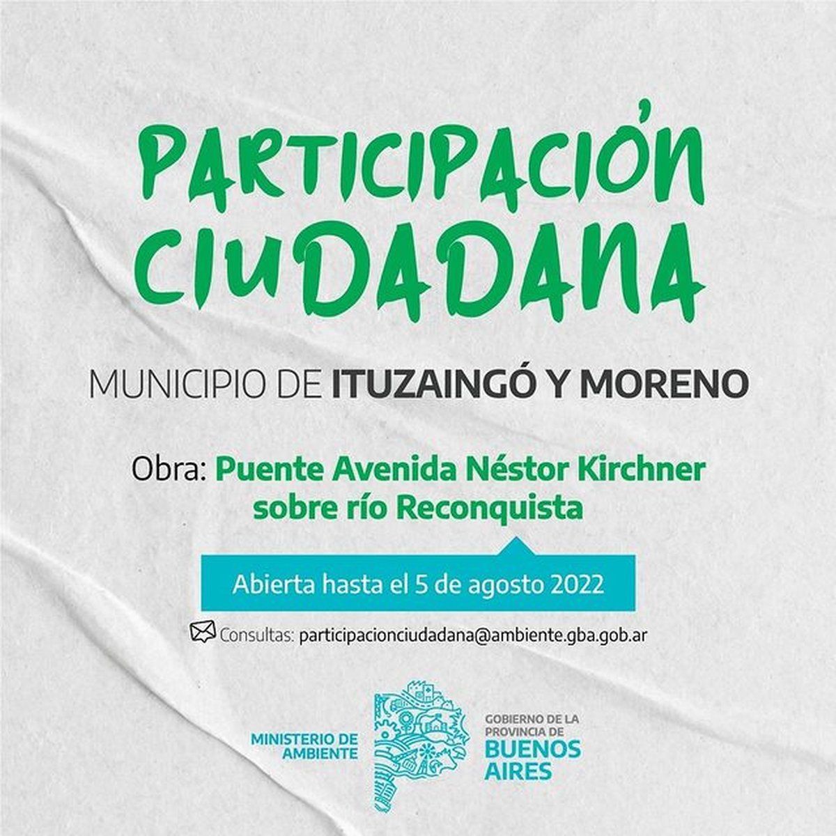 El Gobierno provincial abrió la instancia de consultas ciudadanas acerca del nuevo puente que cruzará el río Reconquista y unirá Ituzaingó con Moreno.