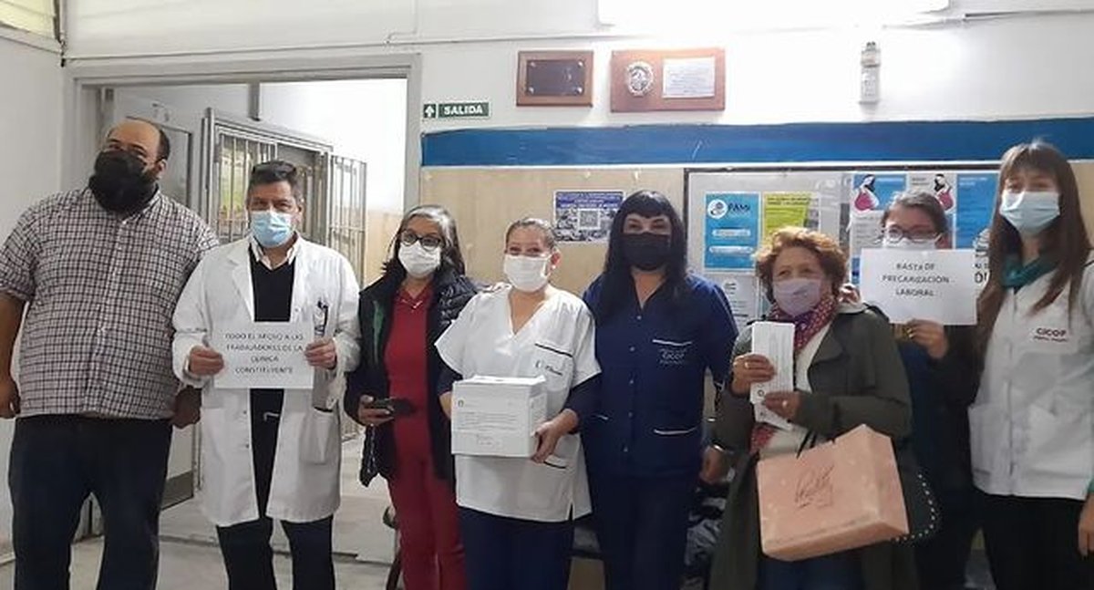 Una agrupación de varios trabajadores del Hospital Posadas mostraron su apoyo a sus pares de la clínica de Morón que están en conflicto desde hace varios días y que denuncian que algunos tienen un atraso en el pago de sus salarios de unos tres mesas, más aguinaldos y horas extra.