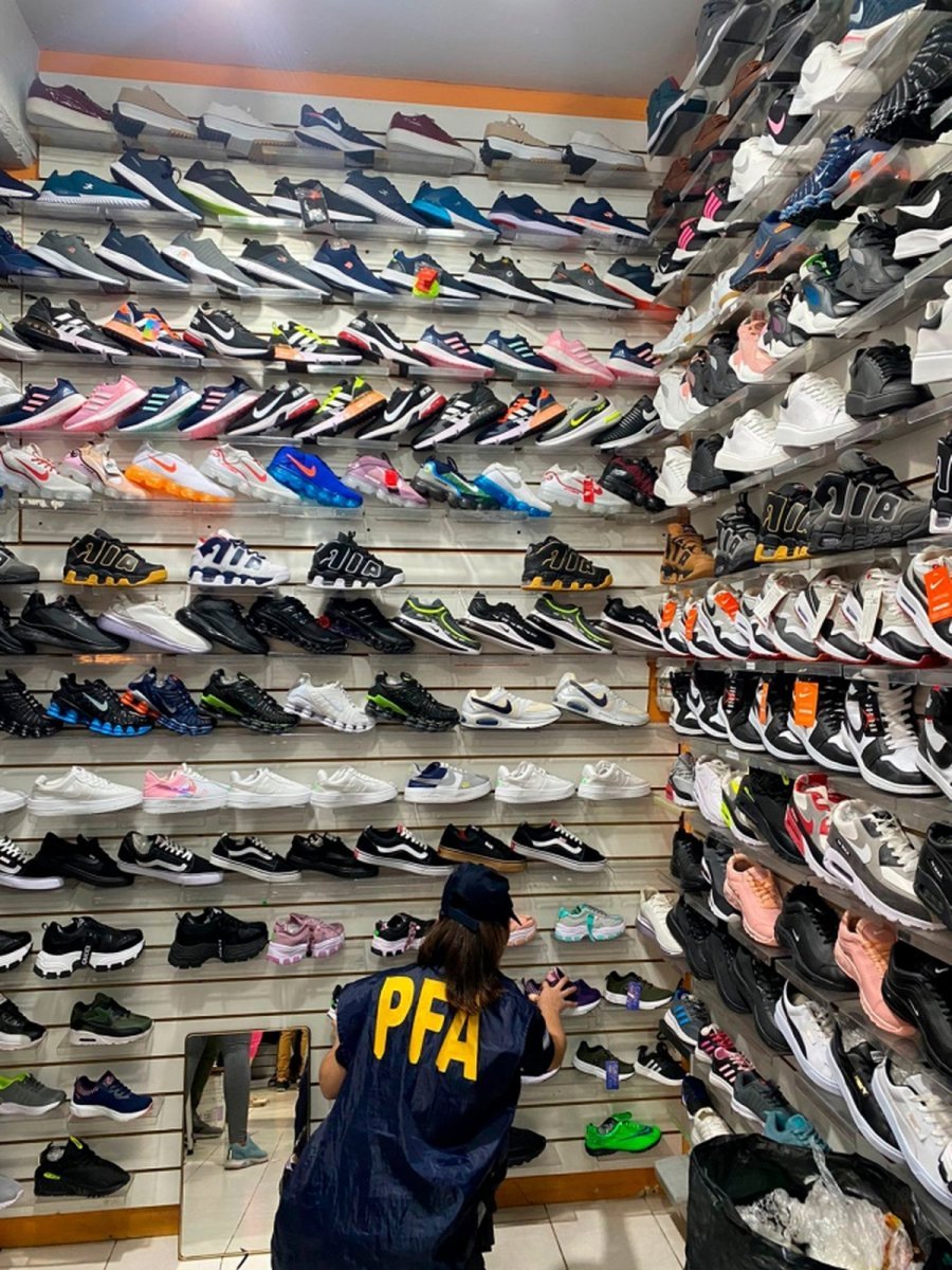 El Departamento de Inteligencia contra el Crimen Organizado de la Policía Federal Argentina (PFA), secuestraron más de 3.400 pares de zapatillas y 1.800 prendas de vestir deportivas apócrifas en diferentes localidades de Moreno, tras varios allanamientos. Los procedimientos se realizaron en tres paseos de compras del partido del oeste del conurbano bonaerense.