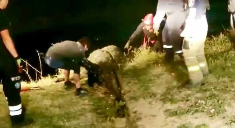 Merlo: Bomberos Voluntarios rescataron a vaca que cayó a río