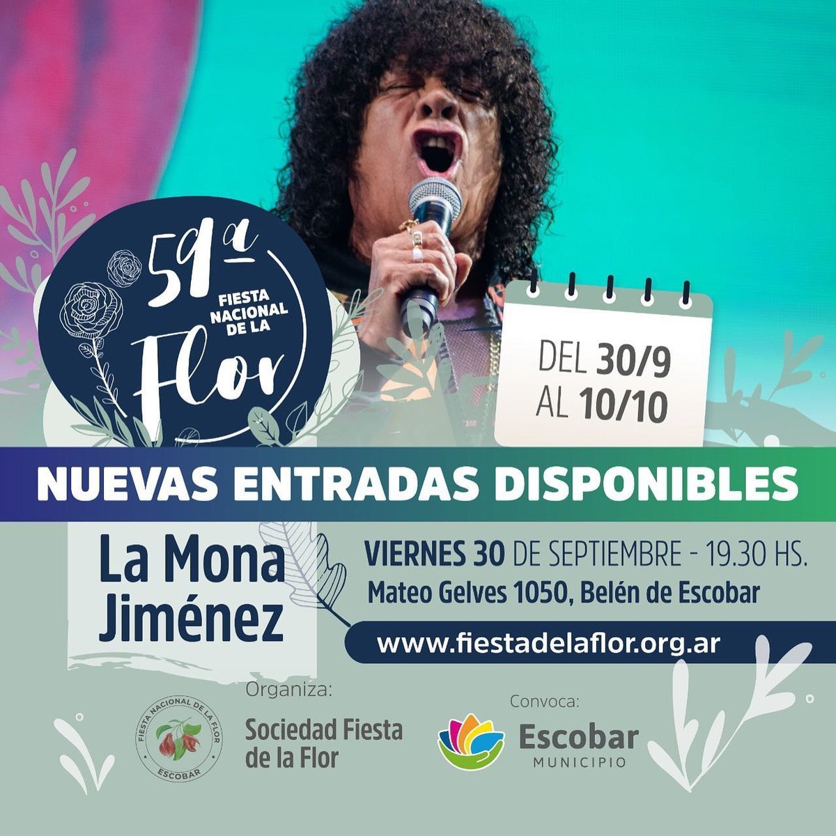 El 30 de septiembre, se realizará la inauguración de la Fiesta Nacional de la Flor a partir de las 18 horas. Y a las 20 horas, se el reconocido cantante cordobés La Mona Jiménez brindará un concierto. El sábado 1ro de octubre, a las 20 horas, será el turno de Los Totora, El Polaco y Los Pericos. Al día siguiente (domingo 2 de octubre) en el mismo horario, La Konga. El viernes 7 de octubre, FMK, Lit Killah y Rusherking.
