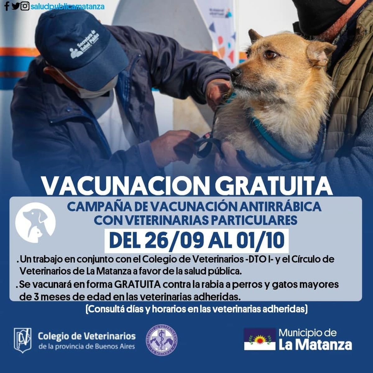 En el Oeste, en el marco del "Día Mundial contra la Rabia" varios Municipios se unieron con veterinarias de la zona para realizar jornadas de vacunación gratuitas contra la rabia, Hurlingham, Tres de Febrero, Morón, Ituzaingó y La Matanza detallaron dónde se deben comunicar los vecinos para acceder a los turnos.