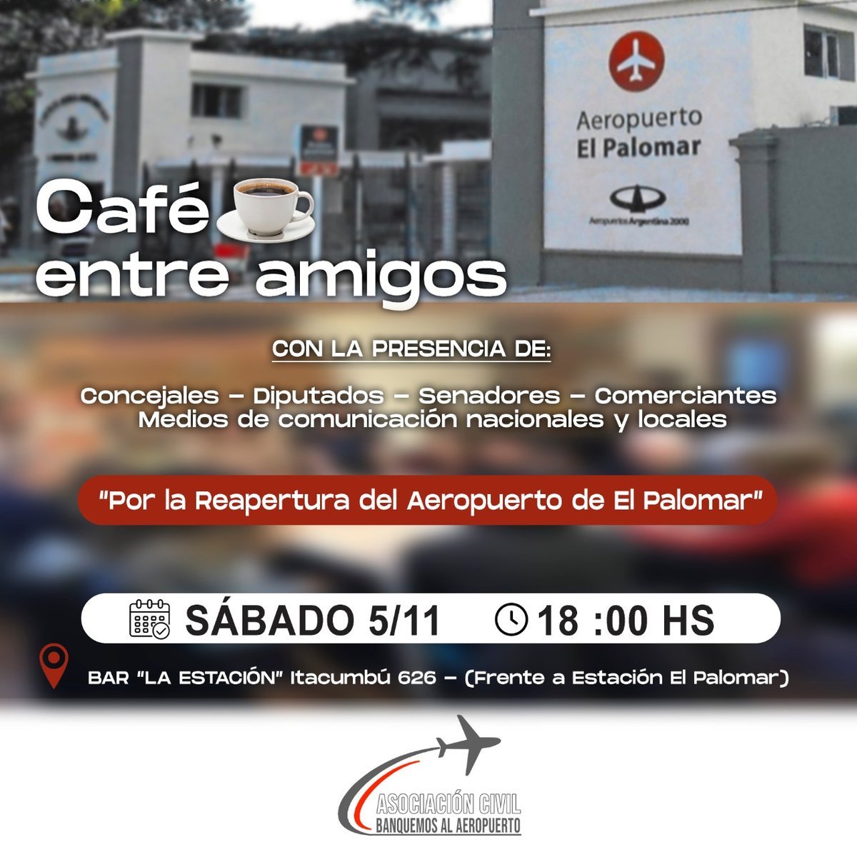 Este sábado, funcionarios locales, provinciales, nacionales y vecinos organizarán un café abierto por la reapertura del Aeropuerto El Palomar. Día, hora y lugar