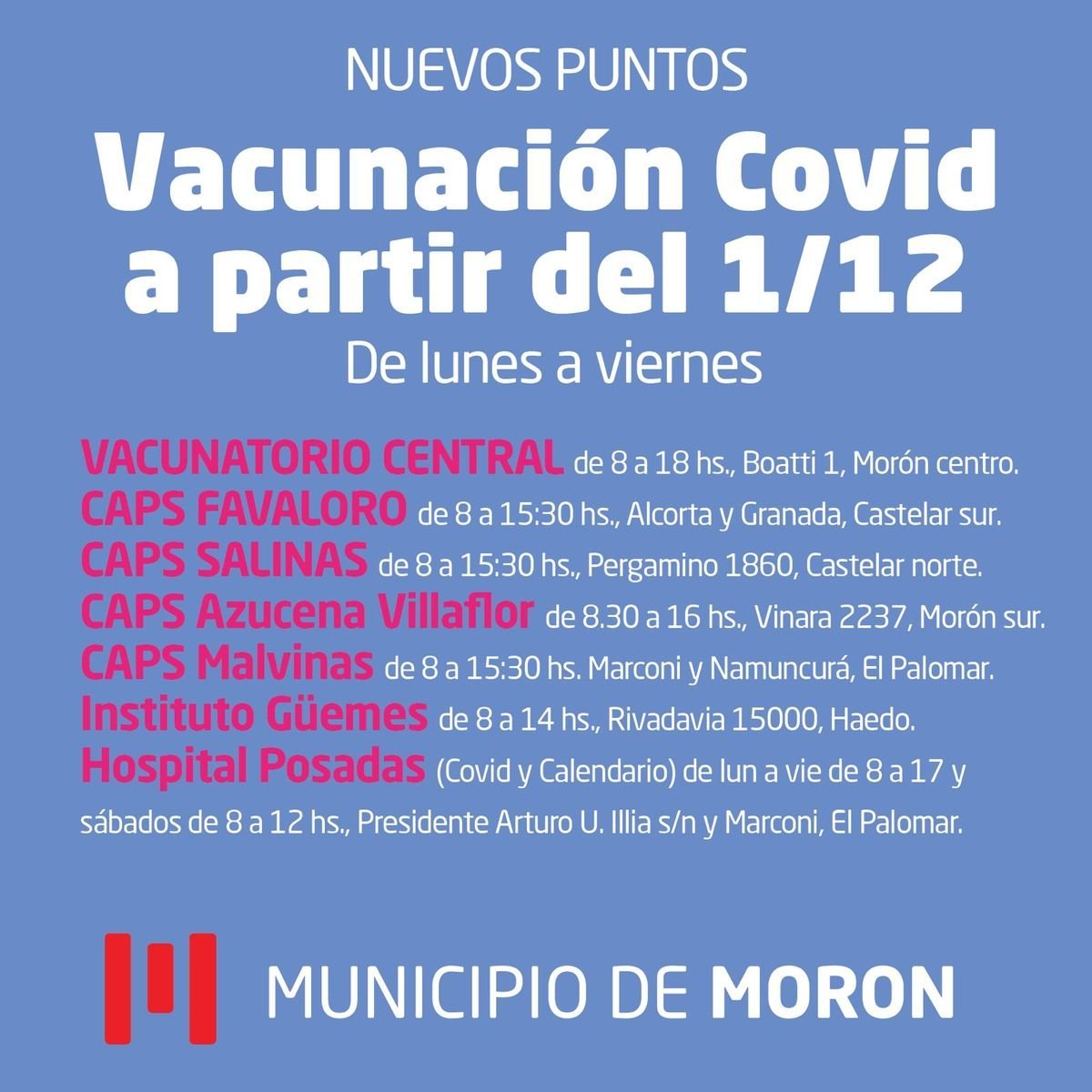 A partir de diciembre los puntos donde se podrán recibir vacunas contra el COVID19 en Morón cambiarán. Todos los detalles en esta nota.