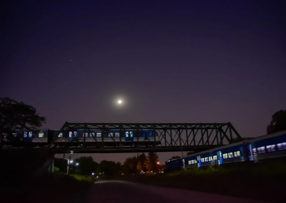 Marcos Paz: impresionante foto de dos trenes y la luna llena