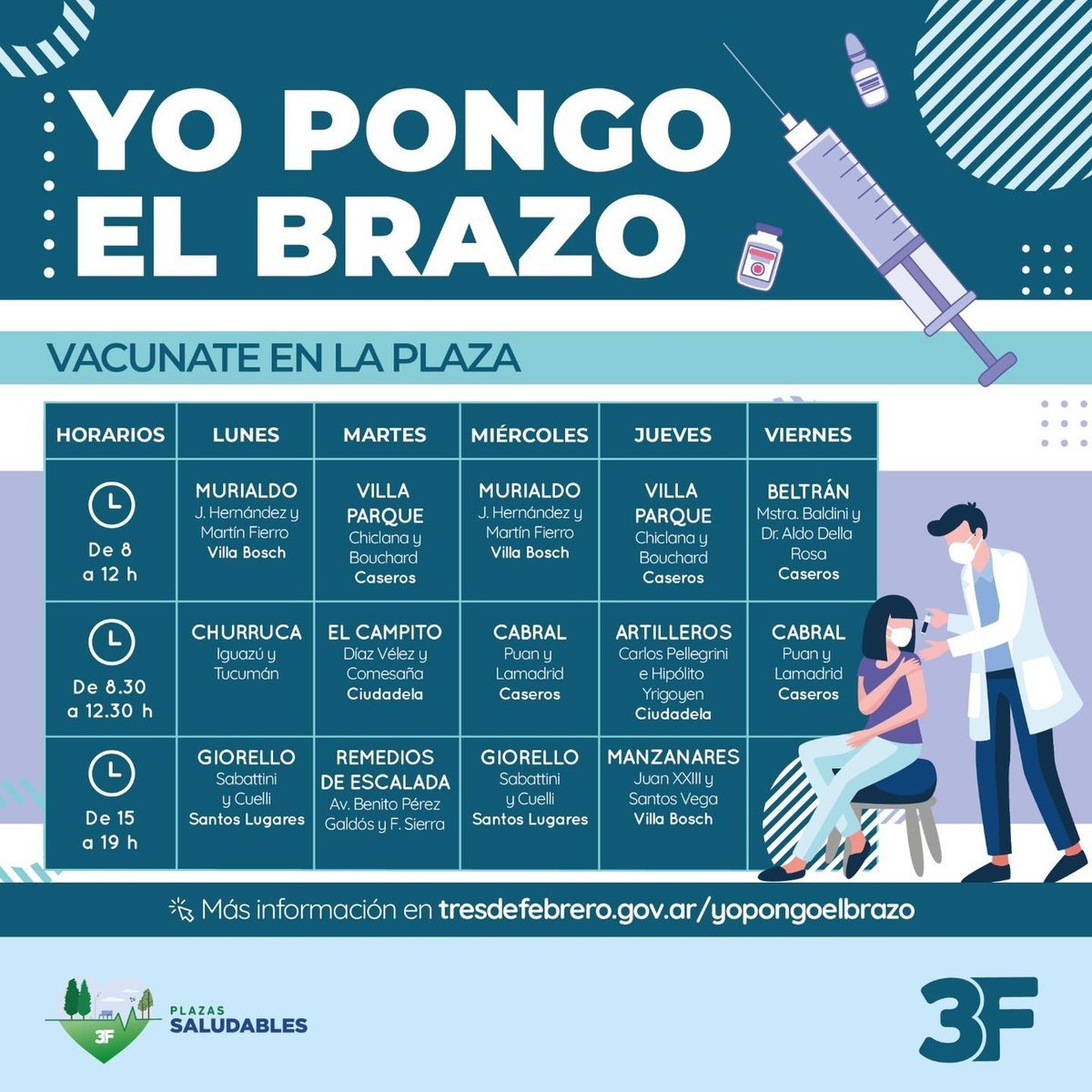 El Municipio de Tres de Febrero llevará adelante varios operativos de vacunación que tendrá lugar en barrios, plazas, clubes o instituciones del distrito. Allí se brindará de forma gratuita, todas las vacunas necesarias para diferentes etapas. Asimismo, se podrá completar el Calendario Nacional acercándote al Centro de Atención Primaria de la Salud (CAPS) más cercano a tu domicilio sin turno previo.