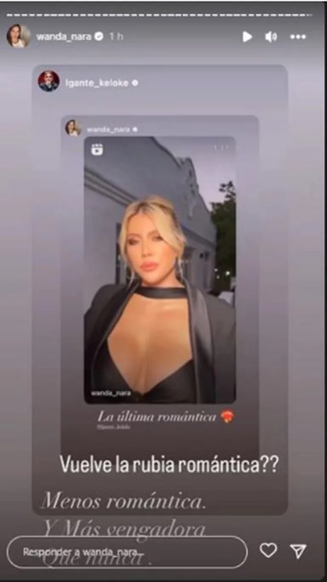 Al respecto de esta situación, la esposa de Mauro Icardi comentó: "La última romántica". Tras el posteo de la mediática, el cantante de cumbia 420 no pasó por alto sus palabras y le consultó: "¿Vuelve la rubia romántica?". Como era de esperarse, Wanda Nara contestó de inmediato. "Menos romántica y más vengadora que nunca", afirmó. "Uy, uy, uy", sentenció L-Gante con algo de ironía.