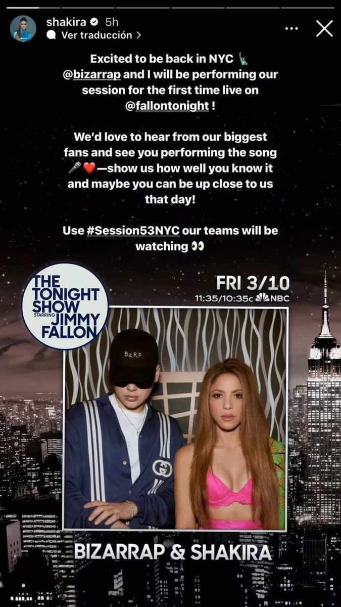 En su cuenta de Instagram, Shakira dijo: "Emocionada de regresar a Nueva York con Bizarrap y estaré presentando nuestra sesión por primera vez en vivo con Jimmy Fallon... Nos encantaría saber de nuestros mayores fans y verlos interpretando la canción. Muéstrenos qué tan bien lo saben y tal vez puedan estar cerca de nosotros ese día". Por el momento, el argentino no se ha pronunciado al respecto.
