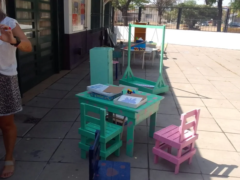 Un grupo de presos de la cárcel de Ituzaingó fabricaron y entregaron bancos, sillas y equipos de ludoteca para un jardín de infantes del Barrio Aeronáutico.
