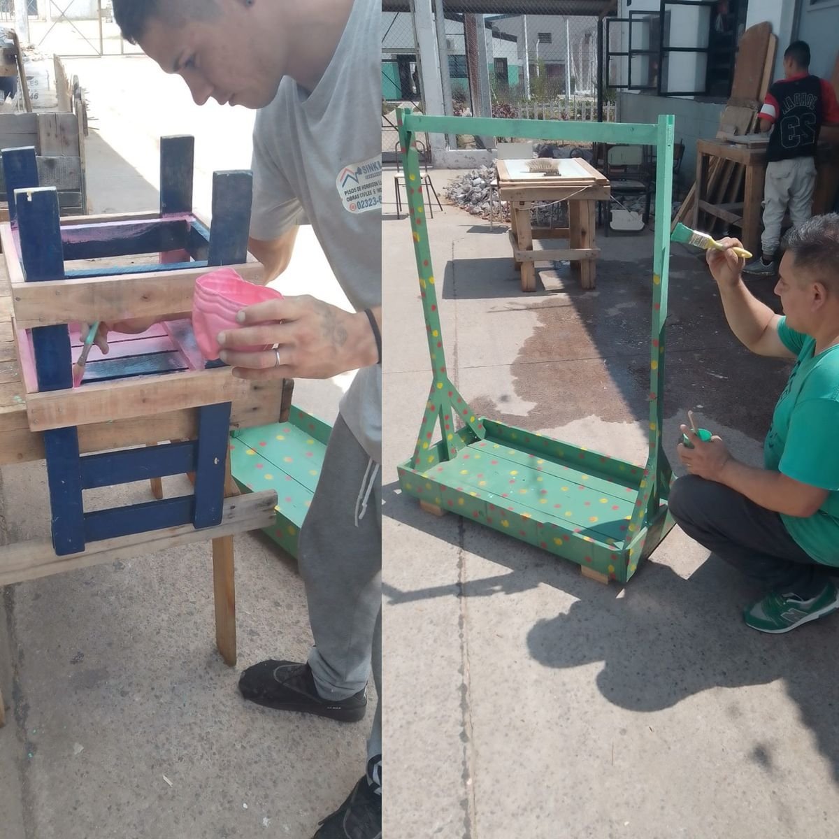 Las personas privadas de su libertad lijaron las piezas y encolaron, restauraron y pintaron el mobiliario hasta que, luego de dos semanas, quedaron en condiciones óptimas para ser entregados al establecimiento inicial con sitio en la calle Teniente Lorenzo Bruza al 2.800, sobre la rotonda.