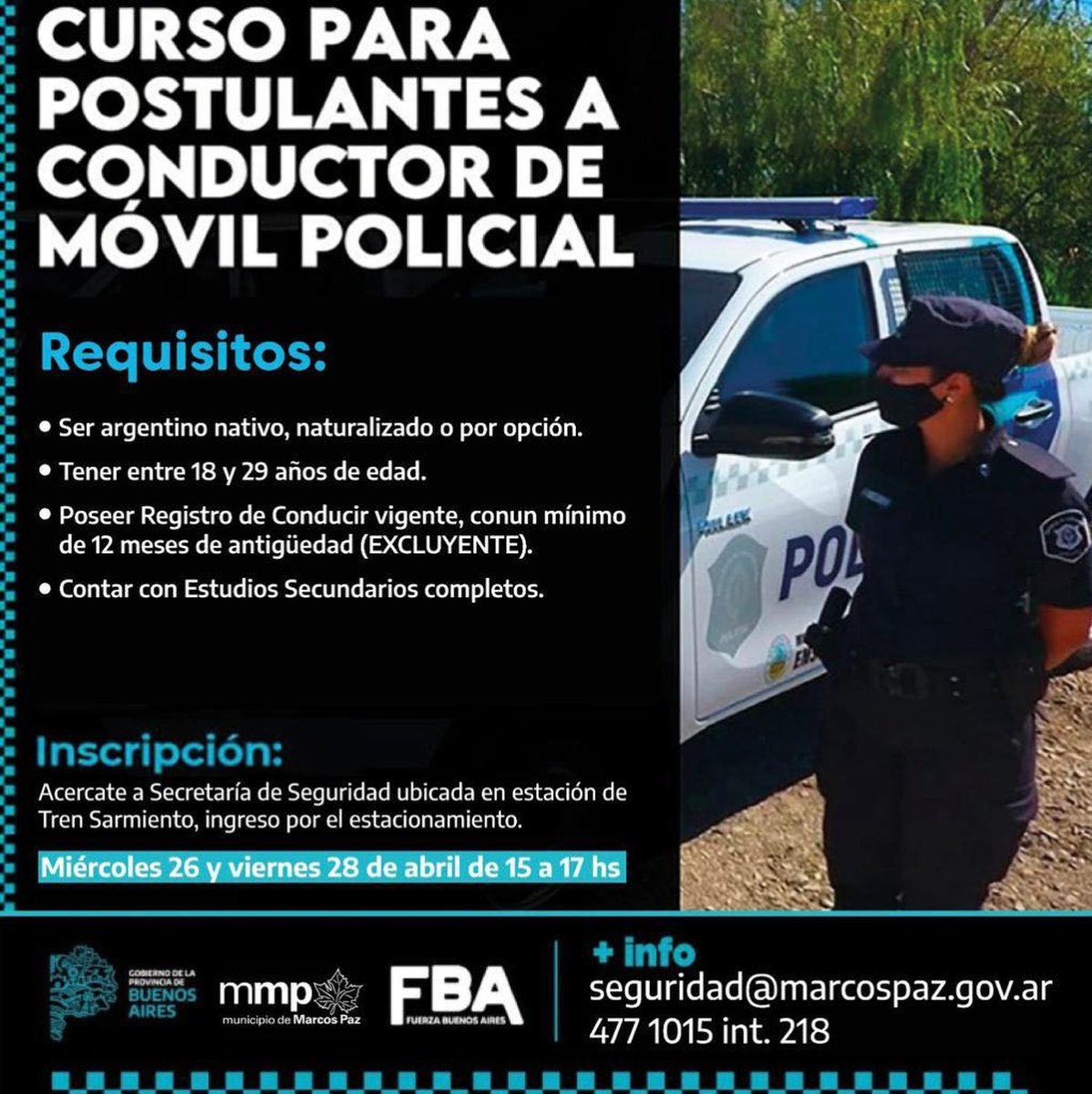 Asimismo, informaron que desarrollarán un curso para postulantes de a conductor de móvil policial. Los interesados pueden recibir asesoramiento vía mail a [email protected] o por teléfono al 477-1015, interno 218.