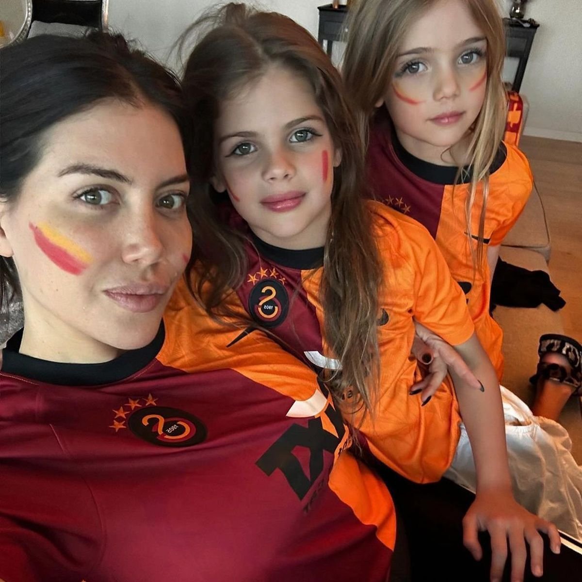 En el siguiente posteo, la conductora de Masterchef subió una tierna foto familiar de los cuatro paseando por Estambul, otra de Icardi y las nenas sentadas en el living de su hogar. La otra foto elegida fue de las tres mujeres con las camisetas del Galatasaray y con los rostros pintados con los colores del equipo en el que juega Mauro.