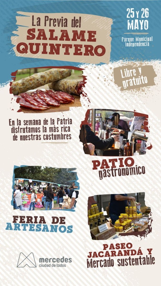 En septiembre, más precisamente entre el 8 y 10 de septiembre, se realizará la Fiesta Nacional del Salame Quintero en el Parque Municipal de Mercedes y desde el Municipio anunciaron que realizarán un evento previo con entrada libre y gratuita.