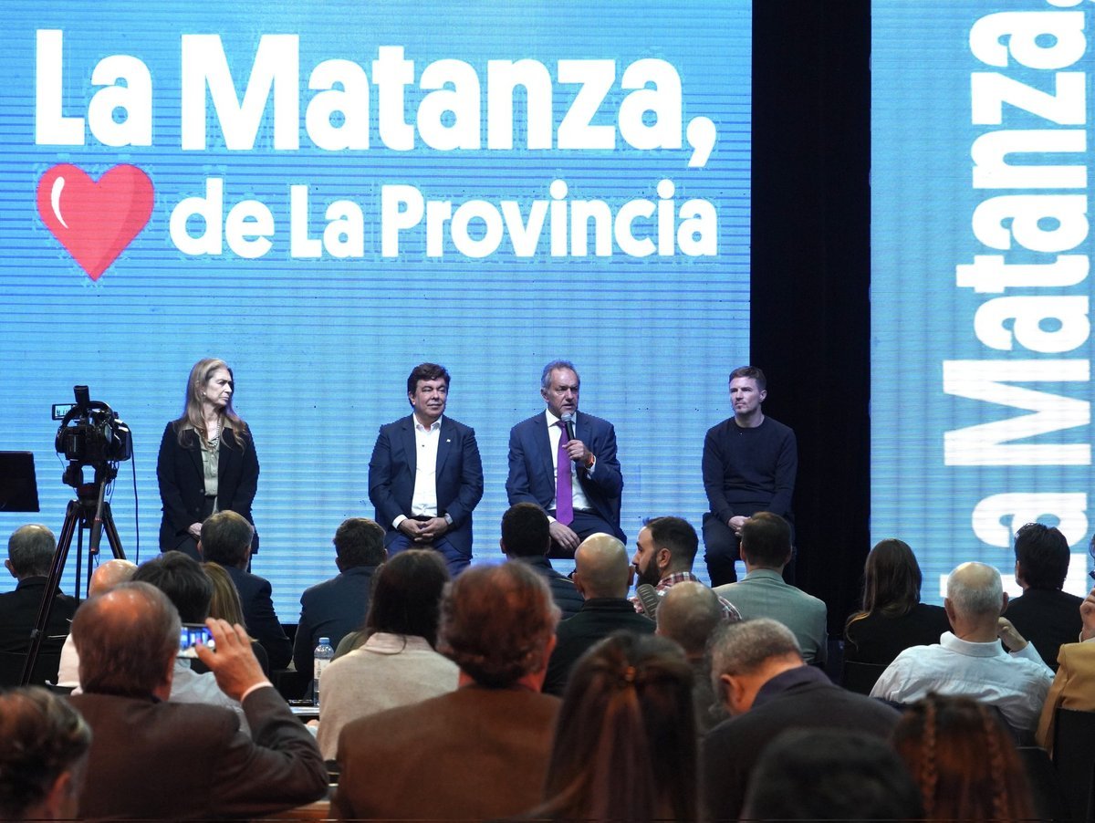 El embajador de la Argentina en Brasil y precandidato a presidente de la Nación, Daniel Scioli, visitó el partido de La Matanza y se reunió con empresarios, junto con el jefe comunal y presidente de la Federación Argentina de Municipios (FAM), Fernando Espinoza, en el marco de la 10° Ronda de Negocios Multisectorial del distrito.