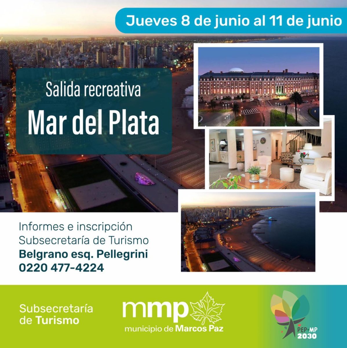 La Subsecretaría de Turismo perteneciente al Municipio de Marcos Paz anunció que llevará a cabo una visita recreativa a la costa bonaerense destinada a los vecinos del distrito. La misma incluye viaje y alojamiento a bajo costo, durante cuatro días en la ciudad bonaerense de Mar Del Plata.