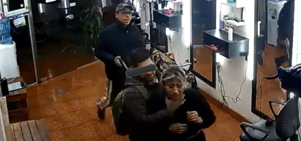 Toda la secuencia fue registrada por una cámara de seguridad privada y muestra como uno de los ladrones se hizo pasar por un cliente y de repente tomó del cuello a la dueña de la peluquería "Siriana" mientras la amenazaba a ella y a otro barbero que estaba de turno. "Al piso porque los mato", se escucha en un momento.