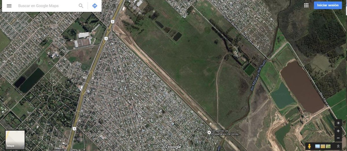 La ubicación de las futuras luces para la Autopista Presidente Perón en Virrey del Pino.