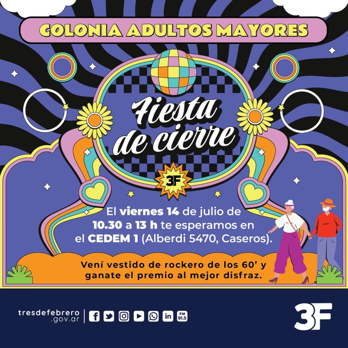 Por otra parte, el viernes 14 de julio, el Municipio realizará una fiesta de baile para adultos mayores. La cita será de 10.30 a 13 horas, en el CEDEM 1, ubicado en Alberdi 5470, en la localidad bonaerense de Caseros (Tres de Febrero). "Te esperamos para festejar el fin de las vacaciones con una fiesta llena de música y diversión. Vení vestido de rockero de los sesenta y ganá el premio al mejor disfraz", concluyeron.
