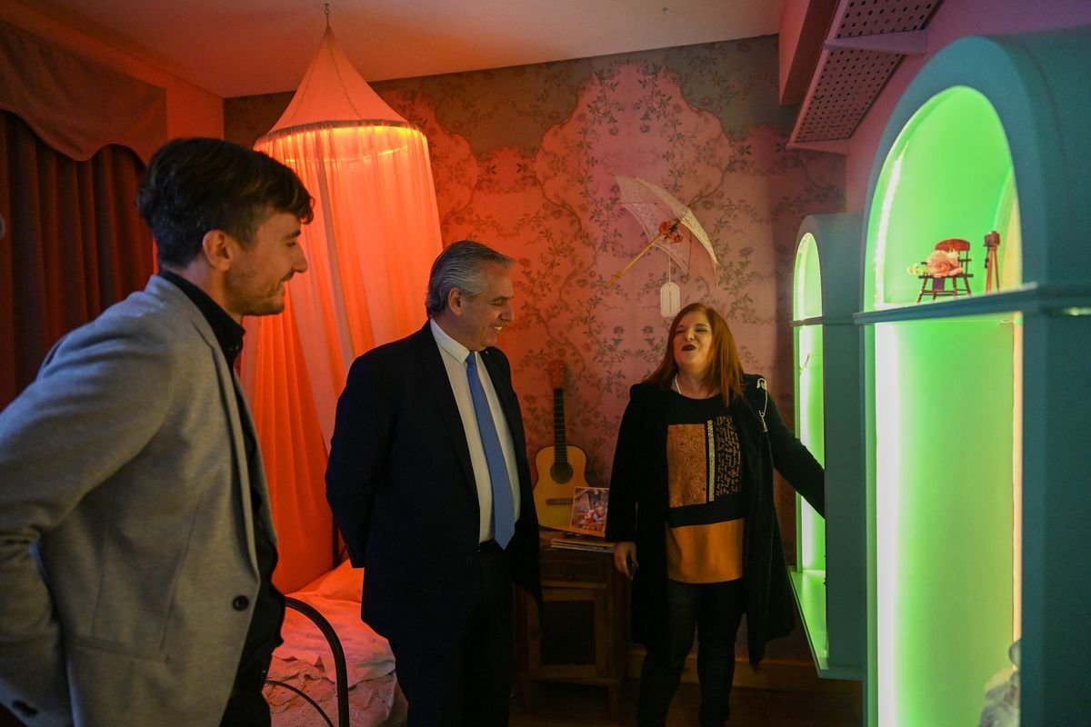 El mandatario realizó la visita con la guía del museo, Maribel García, quien le presentó las propuestas de la muestra, que cuenta, por ejemplo, con una línea del tiempo desestructurada que repasa su biografía a través de puntos claves de su vida. Además, es posible interactuar con objetos representativos de la infancia de la artista.