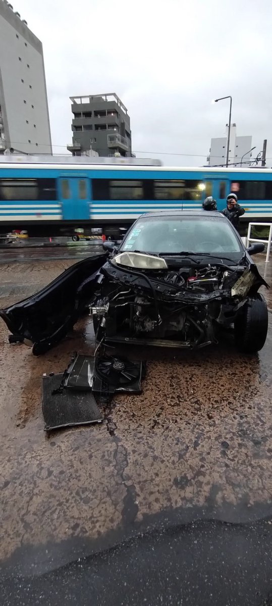 Uno de los autos chocados por el Tren Sarmiento ayer.