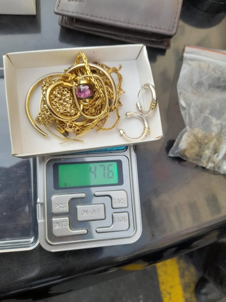 Luego, los oficiales hallaron un inhibidor de señal, utilizado comúnmente para bloquear alamas y abrir vehículos, una barreta, un destornillador plano, un alicate, dos guantes, 100.000 pesos chilenos y 48.750 argentinos, 361 dólares, cuatro cadenas y seis aros dorados, dos plateados, un reloj pulsera y 1,09 gramos de marihuana.