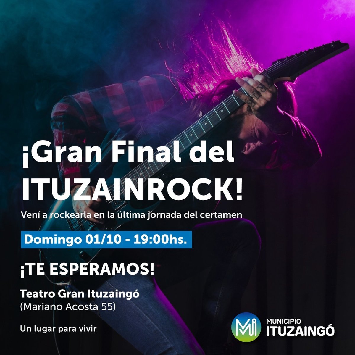 Este domingo 1° de octubre, se llevará a cabo la gran final del certamen/festival de música ItuzainRock, impulsado por la Secretaría de Cultura del Municipio bonaerense de Ituzaingó. La misma tendrá lugar a partir de las 19 horas, en el Teatro Gran Ituzaingó, ubicado en Mariano Acosta 55 (Ituzaingó Sur), con entrada libre y gratuita.