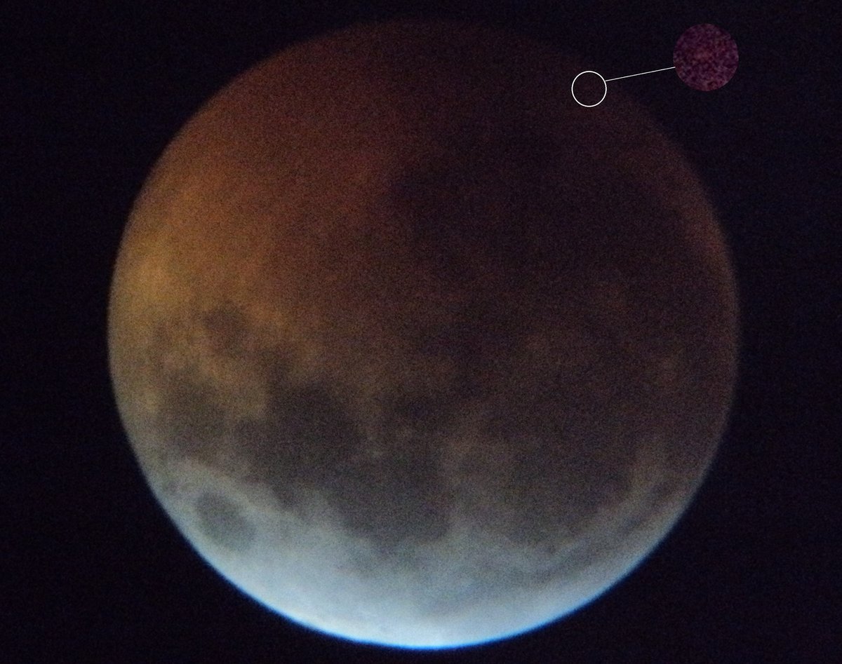 Para finalizar hay un registro que le fue bastante difícil de conseguir a Fernando: el de un cráter en la luna durante el eclipse total del 21/01/19. Casi imperceptible se ve como la superficie de nuestro satélite natural muestra el impacto de un meteoro.