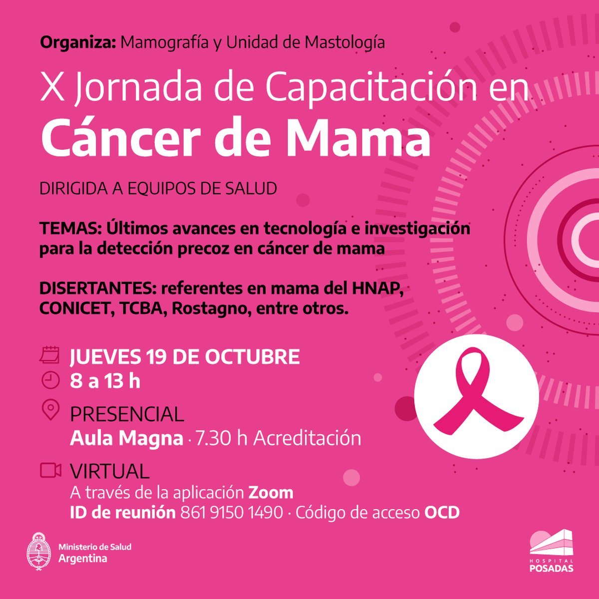 El Cáncer de Mama es uno de los más comunes en todo el mundo y tiene una sobrevida cada vez mayor, si es tratado a tiempo. En este contexto, y en el marco del mes de concientización en el Hospital Posadas realizarán estudios sin orden de derivación y solo con turno previo.