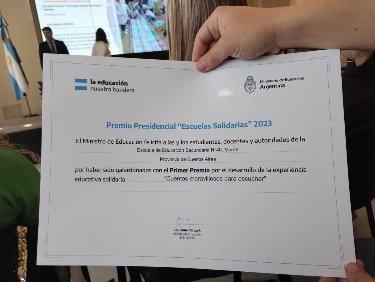 Morón: la Secundaria N°40 recibió un Premio Presidencial.