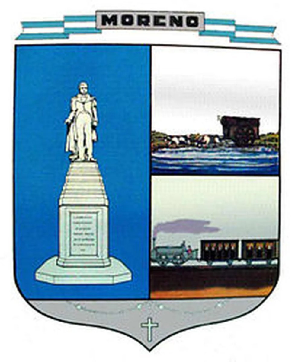 Por su parte, el Partido también cuenta con un curioso escudo conformado por tres cuarteles: el primero tiene una estatua de Mariano Moreno similar a la de la plaza, el segundo una carreta tirada por cuatro bueyes pasando por el río Reconquista y el tercero la antigua locomotora La Porteña, primer tren en la historia argentina y que llegó a Moreno durante varios años.