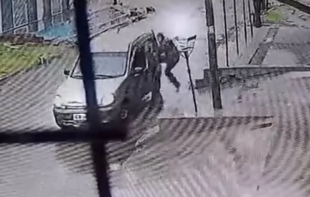 Las imágenes muestran como el damnificado estaba charlando con el encargado del comercio en la vereda y de repente es abordado por el delincuente, que a punta de pistola y amenazándolo de muerte le exige que le entregue las llaves de su Renault Kangoo de color gris oscuro, que en ese momento yacía estacionada a unos metros.