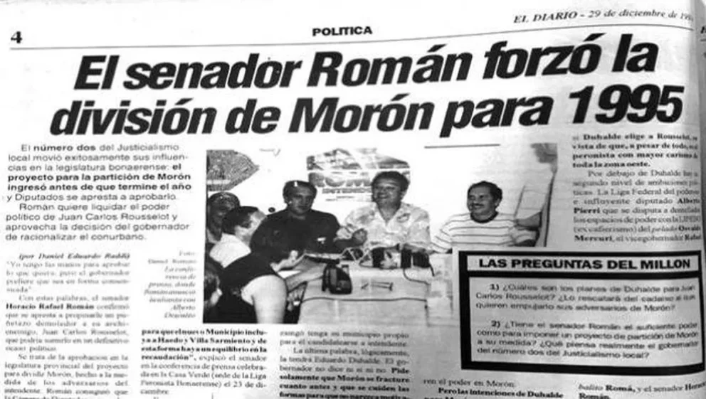 Según Clarín y El Diario de Morón, esta iniciativa servía para recortarle el poder a los intendentes menemistas pese a que, en la versión oficial, el objetivo era reducir las "megacomunas" para achicar la relación entre el número de empleados públicos y la población (se estimaba tres por cada mil habitantes, aunque en Morón había ocho).