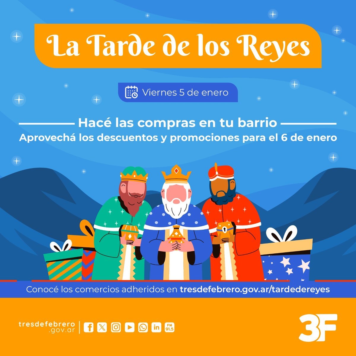 El Municipio de Tres de Febrero anunció que durante toda la jornada de mañana viernes, 5 de enero, un total de cinco comercios del Distrito se van a adherir al programa "Tarde de los Reyes", cuyo objetivo es que cada familia puedan encontrar los mejores precios para este sábado cerca de casa.