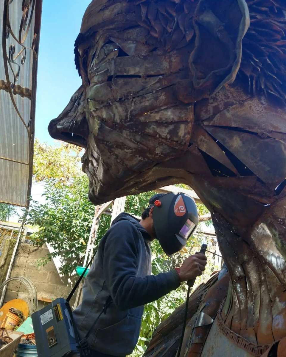 Por otro lado, Mauro explicó en que consiste su modo de crear: "El arte con metales reciclados específicamente considero que tiene un alto impacto ecológico, las obras son a partir de materia prima 100% reciclada, desechos que sin duda afectan el medio ambiente (hierros en desuso, kilos y kilos de chatarra rescatada: viejas autopartes, trozos de motores y otras maquinarias, herramientas oxidadas, entre otros)".